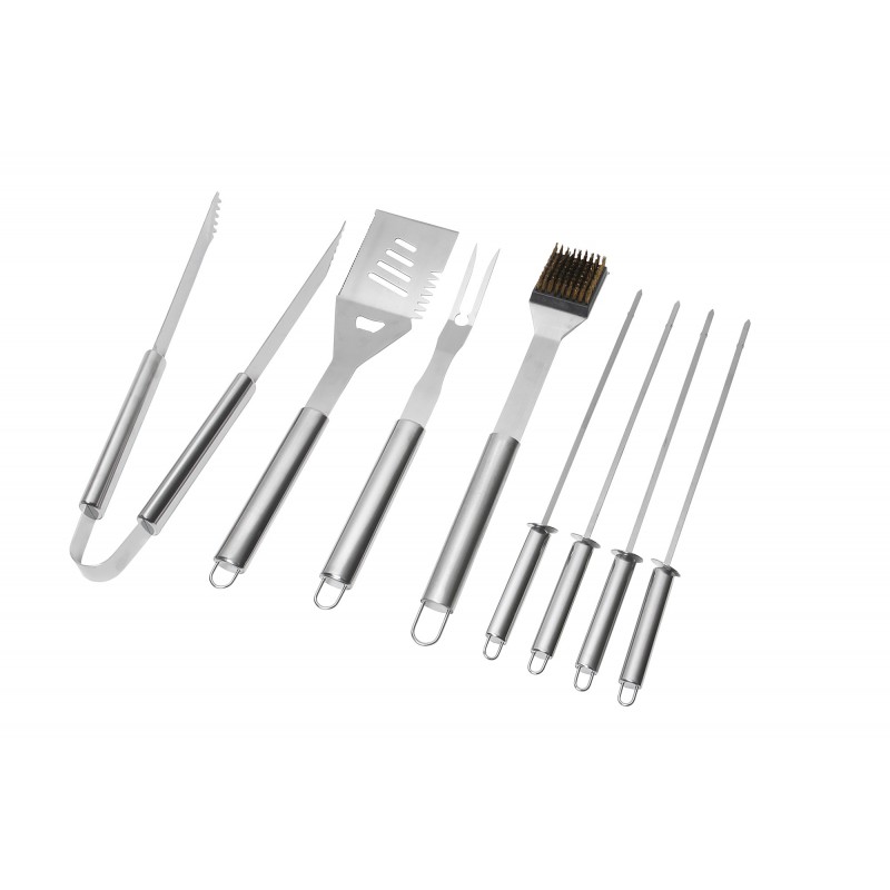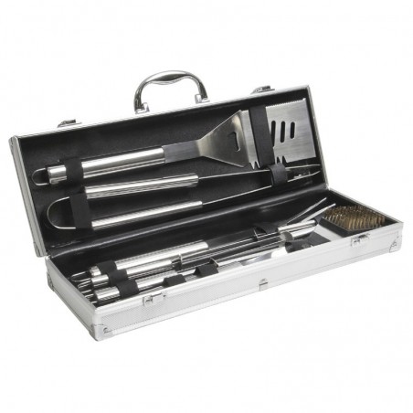 1 pince + 1 spatule + 1 fourchette + 1 brosse + 4 brochettes