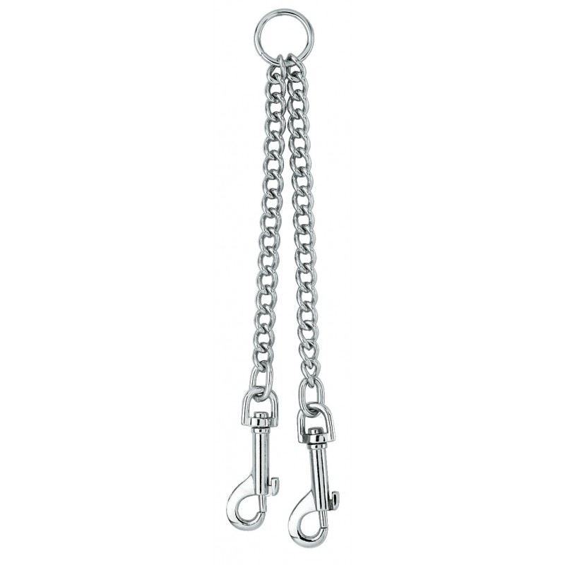 L'accouple en métal est constitué d'un anneau relié à votre laisse et de 2 mousquetons pour attacher les colliers des chiens.