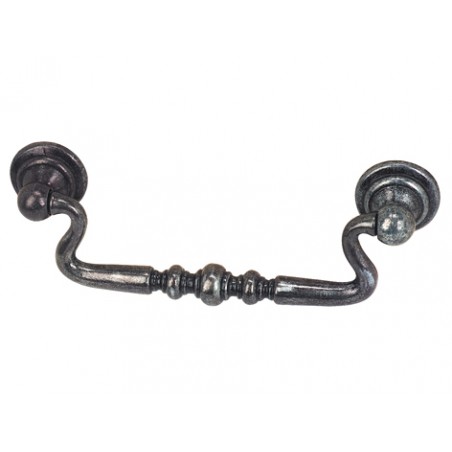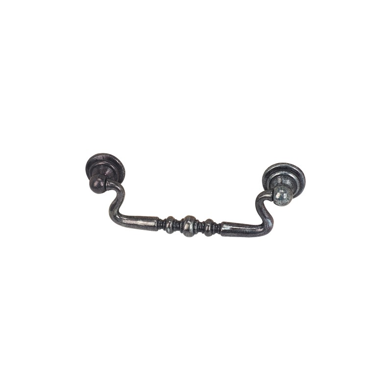 POIGNEE TOMBANTE POUR FERMER - OUVRIR - DECORER A VISSER L. MM 115 H. MM 40 LARG MM 20 ENTRAXE MM 96 EN ZAMAK VIEIL ARGENT
