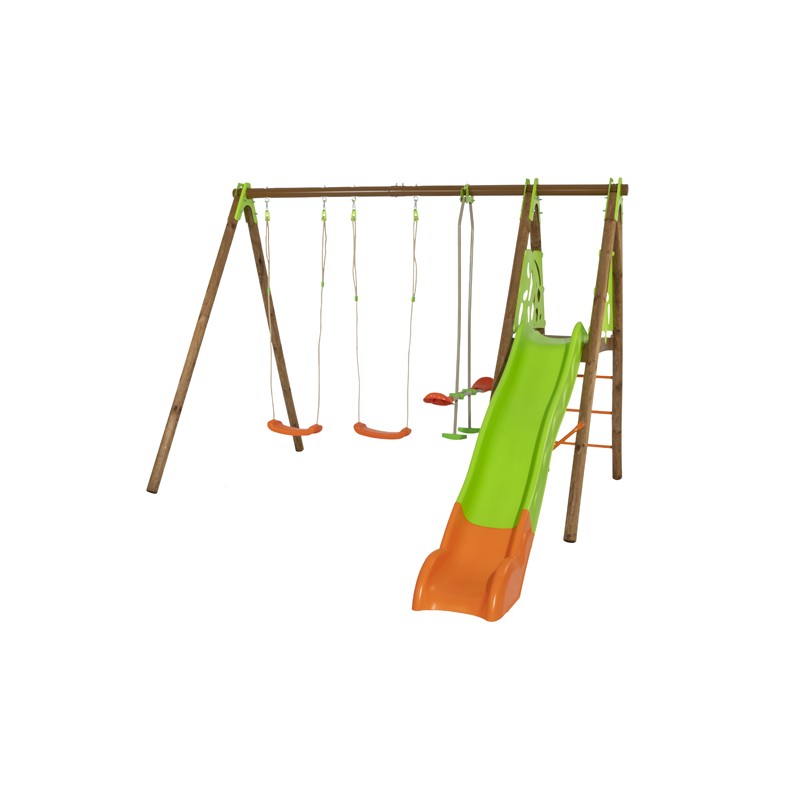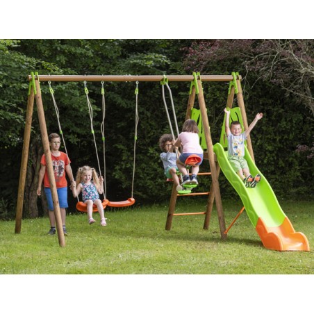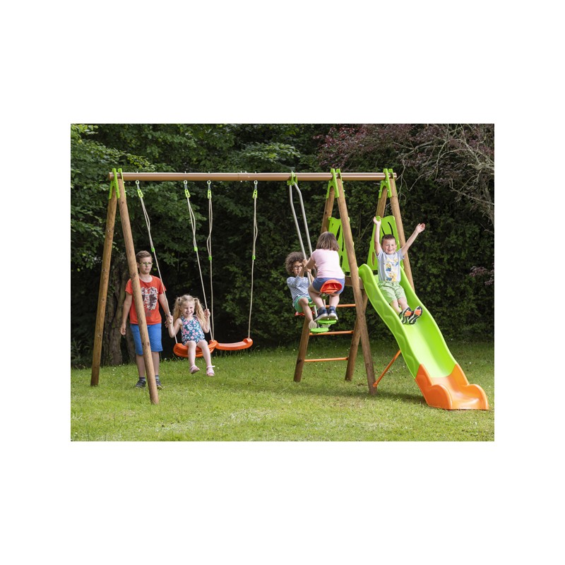 - Équipé de 2 balançoires soufflées, coloris orange.