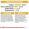 Protéines de volaille déshydratées, riz, maïs, blé, gluten de blé*, graisses animales, protéines animales hydrolysées, pulpe de betterave, gluten de maïs, substances minérales (dont triphosphate pentasodique (0,35 %)), huile de poissons, huile de soja, produits de levures, fructooligosaccharides, levures (source de mannan-oligosaccharides), huile de bourrache (0,1 %), farine de tagète, glucosamine issue de la fermentation, cartilage hydrolysé (source de chondroïtine). *L.I.P. : protéine sélectionnée pour sa très haute digestibilité.