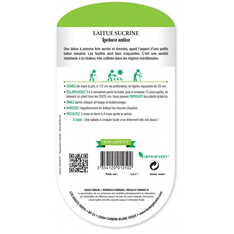 LAITUE SUCRINE - CATÉGORIE 1 - LES DOIGTS VERTS