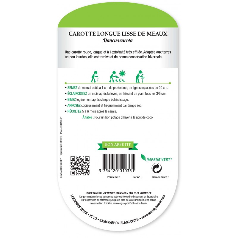 CAROTTE LONGUE LISSE DE MEAUX - CATÉGORIE 1 - LES DOIGTS VERTS