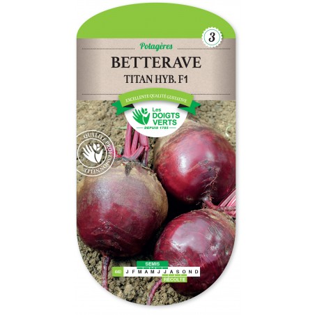 La Betterave Titan est une excellente variété précoce produisant une belle racine sphérique, d’une très bonne qualité gustative.