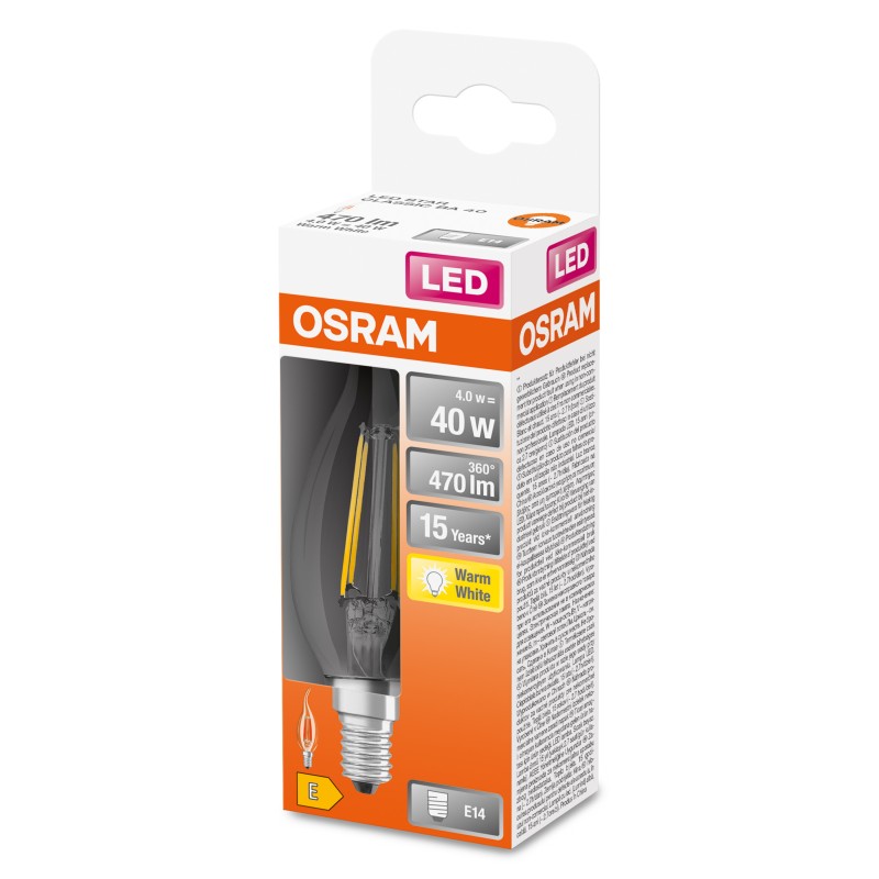 Ampoule LED Filament E14 Flamme coup de vent Claire 4 W = 40 W Blanc chaud 2700 K - OSRAM