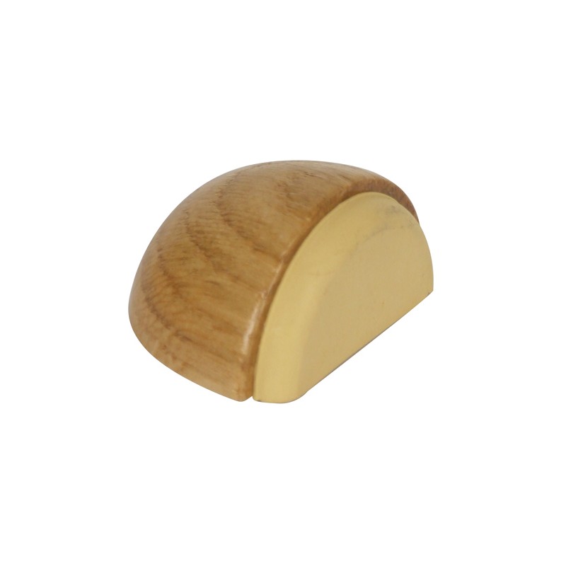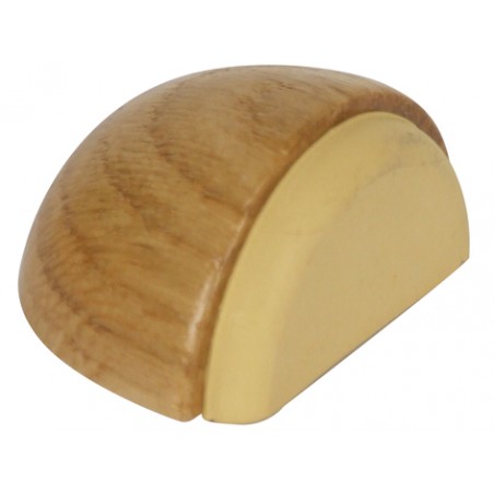 BUTEE DE SOL DEMI-SPHERE PR AMORTIR BAS DE PORTE A COLLER OU VISSER AVEC VIS DBLE FILETS BOIS Ø6X10/ Ø5X25 ET CHEVIL Ø6X30 LG MM 58 HT MM 23EN BOIS/CAOUTCH CHENE VERNI/BEIGE