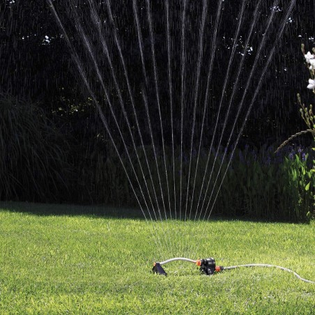 Arroseur oscillant compact pour petits jardins, la grande turbine garantit un arrosage très performant, tout simplement en utilisant la force de l'eau.