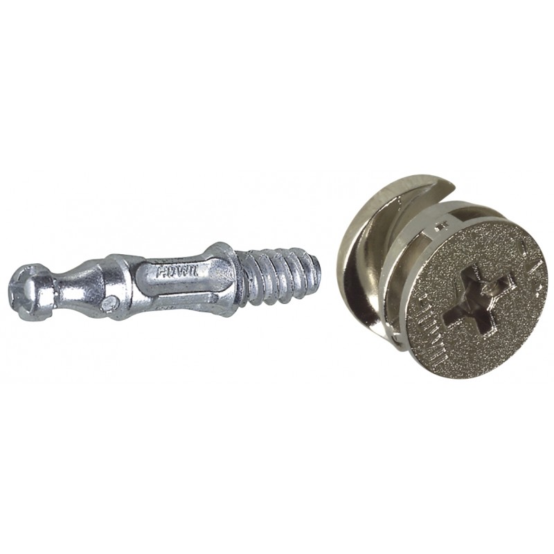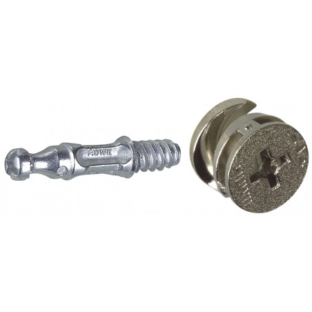 FERRURE D ASSEMBLAGE BOITIER EXCENTRIQUE GOUJON POUR A ENCASTRER PERCAGE EXCENTRIQUE D15X12,7 LONG MM 30 HT MM 12,5 Ø MM 15 EN ACIER/ZAMAK ZING/NICK SS SACHET X 8+8