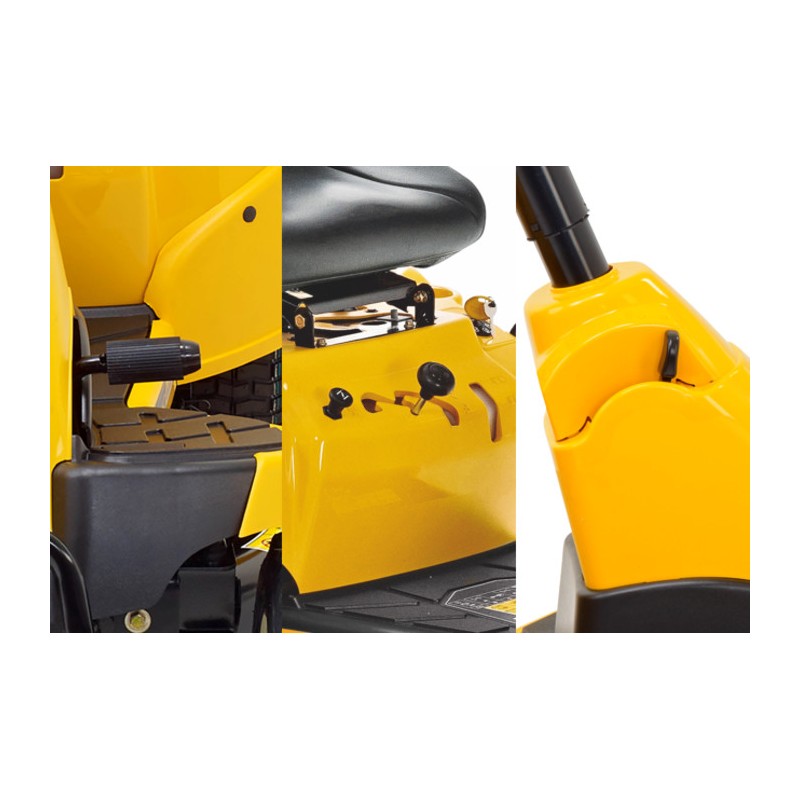 Design moderne, polyvalence et grand confort de tonte ne sont que trois des nombreux points forts des MINIRIDER de la marque Cub Cadet. La tondeuse autoportée compacte et maniable à démarreur électrique est équipée d’un puissant moteur 420 cm³ de la marque Cub Cadet. Qu’il soit question de ramassage, d’éjection ou de mulching, les MINIRIDER convainquent toujours par leur excellent travail et, grâce à leurs dimensions très compactes, elles n’occupent pas beaucoup plus de place qu’une tondeuse à conducteur marchant dans le garage.