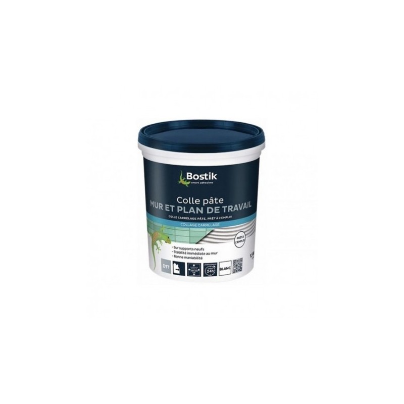 Colle en pâte pour carreaux jusqu'à 33 x 33 cm. Destination mur intérieur. Sur support neuf (plâtre, mortier, béton, bois...).