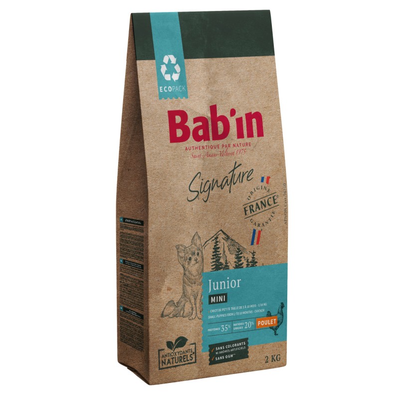 BAB’IN MINI JUNIOR apporte tous les nutriments nécessaires à la croissance courte et intense des chiots de petite taille grâce à son apport énergétique élevé. Cet aliment contribue à une digestion optimale et aide au bon équilibre de la flore intestinale. La taille des croquettes est adaptée à leur morphologie. Il convient également à la chienne en gestation ou en lactation.