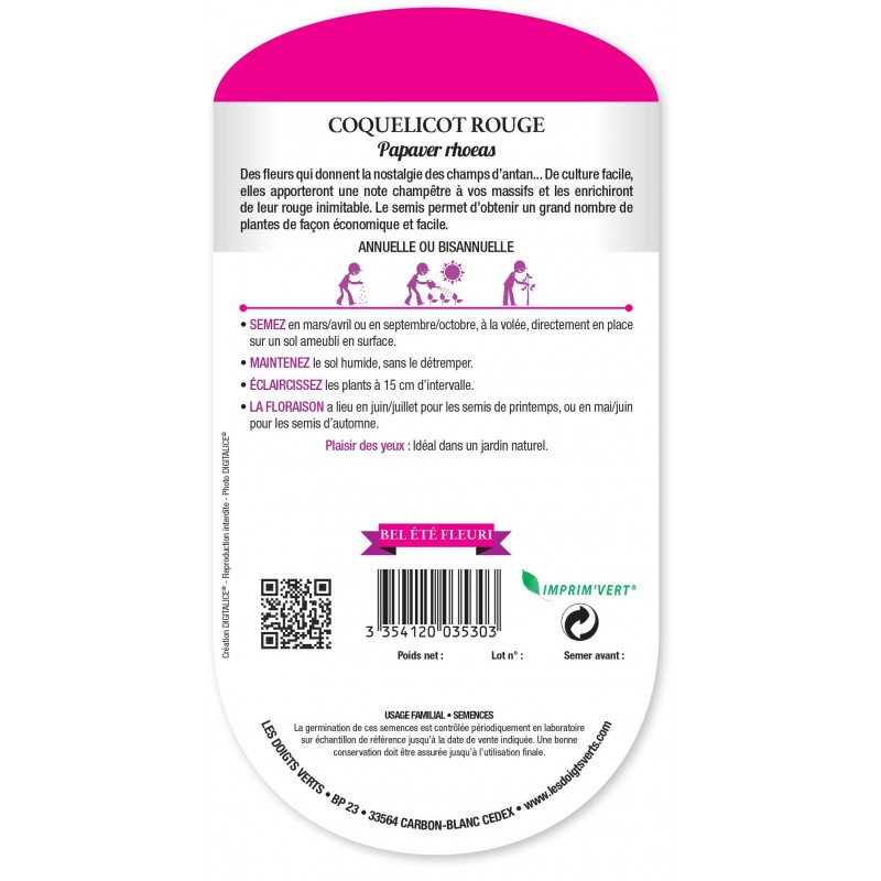 Des fleurs qui donnent la nostalgie des champs d’antan… De culture facile, elles apporteront une note champêtre à vos massifs et les enrichiront de leur rouge inimitable. Le semis permet d’obtenir un grand nombre de plantes de façon économique et facile.
