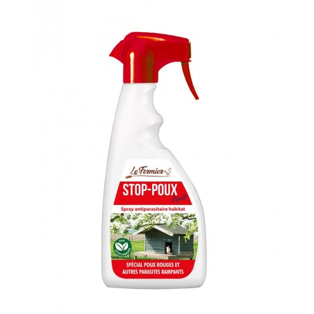 Grâce à sa formule à base de géraniol, un actif d’inspiration naturelle, Stop-Poux est une lotion antiparasitaire qui lutte contre les poux rouges et les autres insectes rampants (puces, tiques, cafards, fourmis) présents dans l’habitat des volailles et des oiseaux.