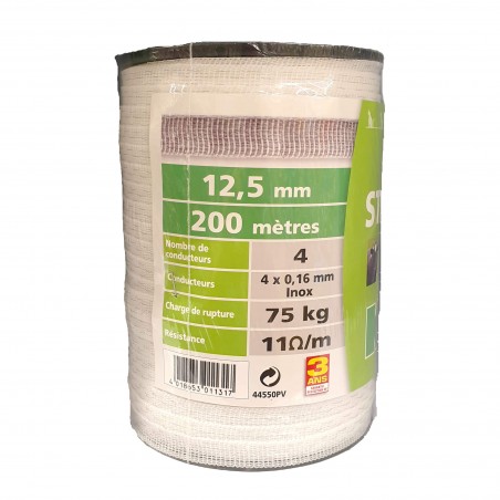 RUBAN CLOTURE STANDARD BLANC 200M / 12.5MM - KICLO
