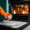 Sur four tiède : Préchauffer 2 à 3 minutes (thermostat 2) puis éteindre le four. Attendre 10 minutes environ. Appliquer le produit par vaporisation verticale à 20 cm suivant le même principe que sur les surfaces froides. Laisser agir 20 mn environ. Rincer abondamment avec une éponge humide. Rincer le bouton pressoir à l'eau claire sans l'enlever de l'aérosol.