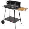 Barbecue à charbon de bois en fonte, grille de cuisson en acier chromé, sur chariot.