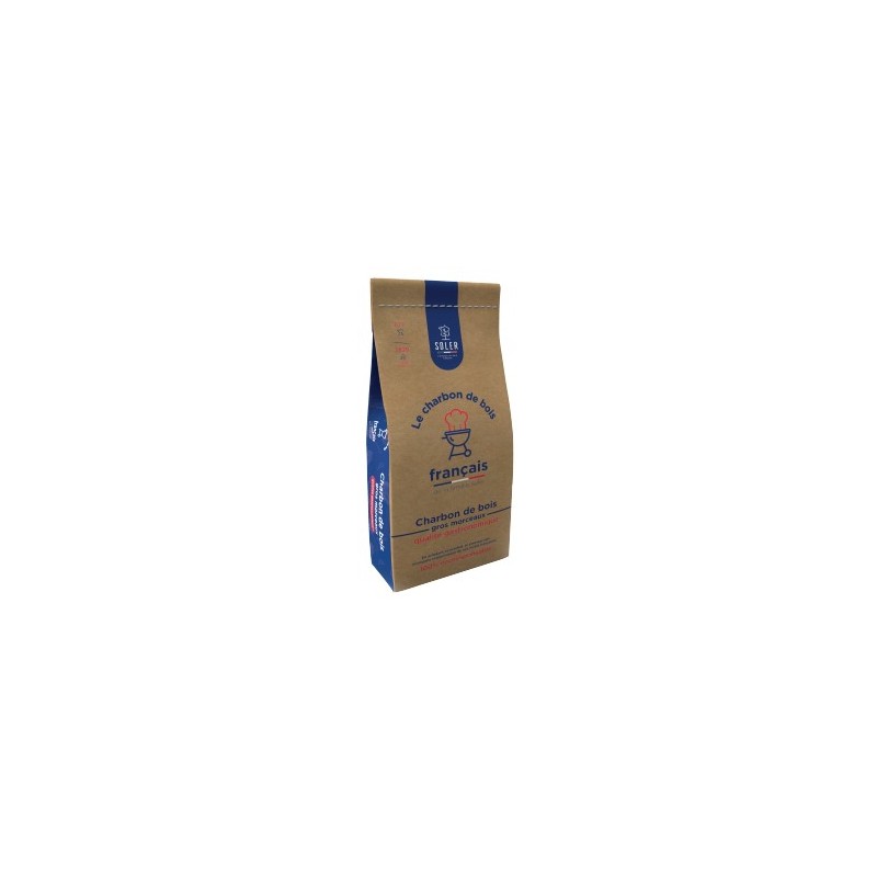 Sac de charbon de bois de 40 L Soler. Bois issu de forêts gérées durablement en France et conception bio-épurée. De qualité supérieure, il assure un allumage rapide du barbecue et une durée de braise d’1h30 par session.