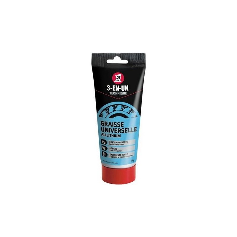 Assure une lubrification longue durée de tous les mécanismes sujets à graissage, qu'ils roulent, tournent, glissent ou s'emboitent. Forte de son excellente tenue à la pression et à l'usure, résistante à l'au, elle réduit les coefficients de frottements.
