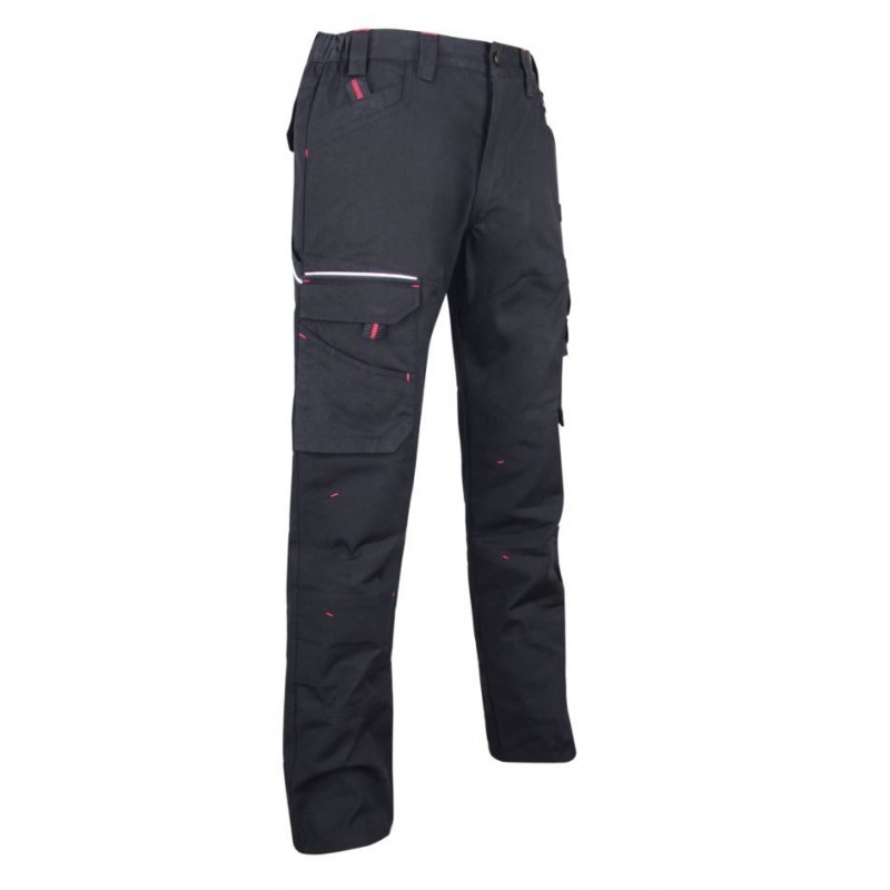 Braguette zip spirale - 1 anneau D - 2 grandes poches en biais + 1 poche ticket avec auto-agrippant - cuisse droite : poche à rabat + emplacements outils - cuisse gauche : 1 grande poche avec auto-agrippant + 1 grande poche à rabat + emplacements outils - DOS : 2 grandes poches à soufflet, dont 1 avec rabat - 1 porte marteau - double et triple piqûre - points d’arrêt contrastants