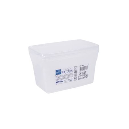 Vendues en lot de 2, ces boîtes de congélation rectangulaires d´une capacité de 2x1,25L sont équipées d´un couvercle rentrant, très facile à positionner.