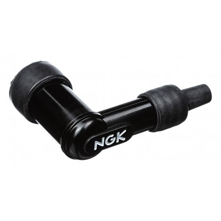 Le capuchon antiparasite NGK permet d'acheminer la tension de la bobine à la bougie avec une étanchéité parfaite. Le capuchon antiparasite est conçu pour les bougies sans olive, avec résistance 10 kΩ, antiparasite avec angle 90°, en résine phénolique, pour bougie avec filetage.