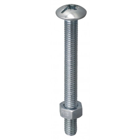 BOULON POELIER TÊTE RONDE LARGE FENDUE POZIDRIV EN ACIER ZINGUE TAILLE 6X80 DE 40 PIECES