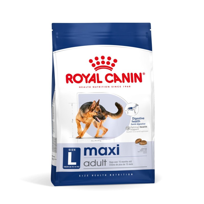 L’aliment ROYAL CANIN® Maxi Adult est spécialement conçu pour répondre aux besoins nutritionnels de votre chien. Cet aliment convient aux grands chiens âgés de 15 mois et plus dont le poids adulte se situe entre 26 et 44 kg.