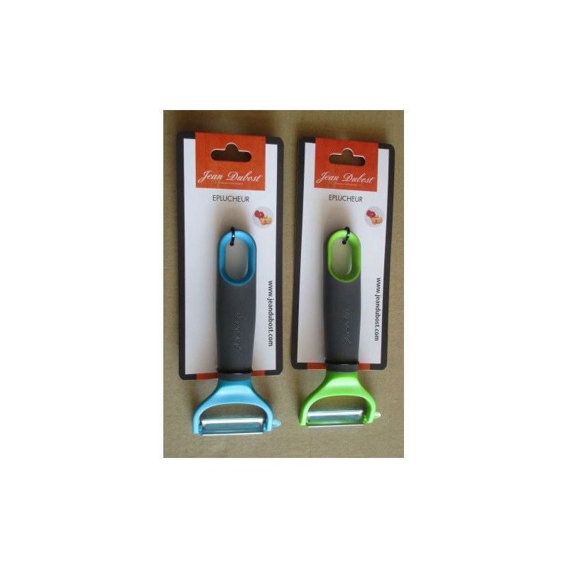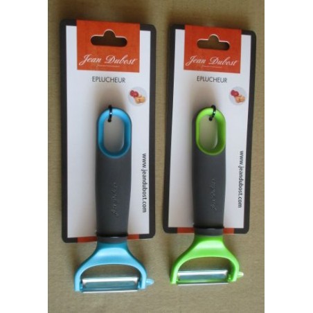 Description : Éplucheur à julienne, manche en bi matière. Coloris vert ou bleu.