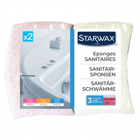 Les éponges sanitaires nettoient tout l’univers de la salle de bains sans rayer. Elles éliminent les voiles de calcaire, dépôts de savon, dentifrice…