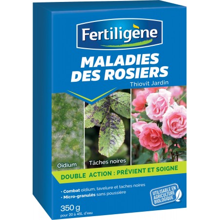 A base de soufre, matière active d'origine minérale - ce fongicide agit par vapeur et par contact pour éliminer les principales maladies des rosiers : oïdium, taches noires. Double action : préventif et curatif. Pratique : mini granulés dispersables dans l'eau pour un dosage précis et sans poussière. Utilisable en Agriculture Biologique