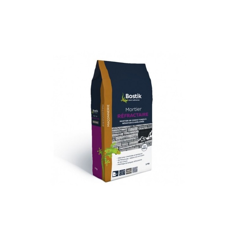 Résiste jusqu'à 1200 °C. Montage de briques réfractaires sur tous supports réfractaires. Idéal pour cheminée et barbecue. Destination : mur, intérieur et extérieur.
