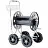 Chariot dévidoir avec 4 roues. Entièrement en métal, ce chariot dévidoir à 4 roues est conçu pour affronter tous les problèmes. Le tambour glisse bien grâce au Silent Block. Capacité idéale pour des jardins de grandes dimensions.
