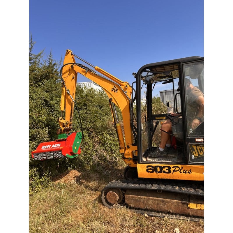 Le broyeur type forestier est un équipement haut de gamme et robuste pour pelles de 1,7 à 5 tonnes, avec une largeur de travail de 600 mm. Il est muni d’un châssis renforcé en acier STRENX, offrant résistance et légèreté. Il comprend des couteaux et contre couteaux, un rotor équilibré électroniquement, des roulements haut de gamme, et une transmission par courroies trapézoïdales. Le rotor tourne à 2600-3000 tr/min et l’équipement pèse 160 kg. Le moteur hydraulique CASAPPA supporte des pressions jusqu’à 250 bars, avec une valve anti-cavitation de série. Il est doté de chaînes avant, des patins latéraux renforcés, et un rouleau palpeur réglable.