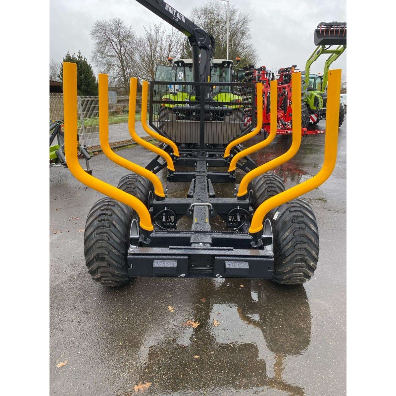 Découvrez notre remorque forestière 11,3T, idéale pour les tracteurs à partir de 80 cv. Cette remorque robuste de qualité professionnelle dispose de flexibles protégés, d’essieux bogies Q70 6×205, d’un freinage sur deux roues avec des roues en 400/60-15.5 équipées de jantes renforcées, une rallonge de remorque de série et un timon orientable par 2 vérins, pour un poids de 1220kg. Elle est conçue pour répondre aux besoins les plus exigeants dans la manutention et le transport du bois.