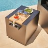 Compacte, elle est aussi le support idéal qui s'intègre aux espaces réduits et en milieu urbain en toute simplicité. La desserte roulante s'accompagne d'un bac de rangement et est compatible avec les planchas 45, 60 et Cooking.