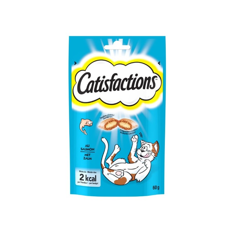 Les friandises Catisfactions® sont des friandises à croquer. Elles feront le bonheur de votre chat grâce à leur texture croquante à l'extérieur et fourrée d'un délicieux coeur tendre. Chaque friandise contient moins de 2kcal. Les friandises se conservent parfaitement grâce à leur sachet refermable.