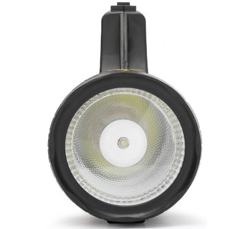Phare LED rechargeable 3W avec chargeur maison (220v) et voiture (12V), équipé d'une batterie au plomb rechargeable 4v 2ah. Plus de 5 heures d'autonomie à pleine charge (lumière 50%. 2 heures si lumière 100%). Faisceau visible à 250 m, IP 20. Lumière focalisée, en plastique hyper-résistant. Puissant: 170 lumens grâce à la LED haute puissance 3w et au réflecteur hautes performances Velamp. Léger et toujours disponible: c'est un partenaire de la vie quotidienne. Peut être utilisé dans le garage, dans la cave, marcher dehors, laisser sortir le chien... Compact et résistant: en plastique PP très robuste. Pour la voiture, promenades, randonnées, camping, bricolage, pêche, chasse, excursions....