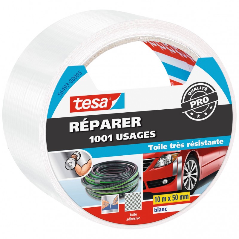 ADHÉSIF TOILE DE RÉPARATION BLANC 10MX50MM - TESA