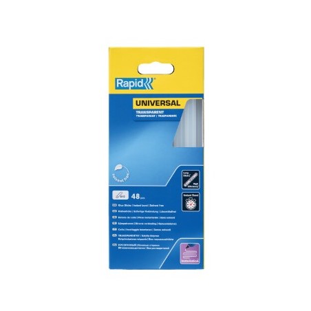 Ces bâtons de colle universelle transparents de 12 mm offrent un collage de qualité grâce à une forte teneur en résine. Parfait pour une large gamme d'applications où une colle transparente convient. Le paquet contient 48 longs bâtons de colle, parfaits pour les travaux d'installation.