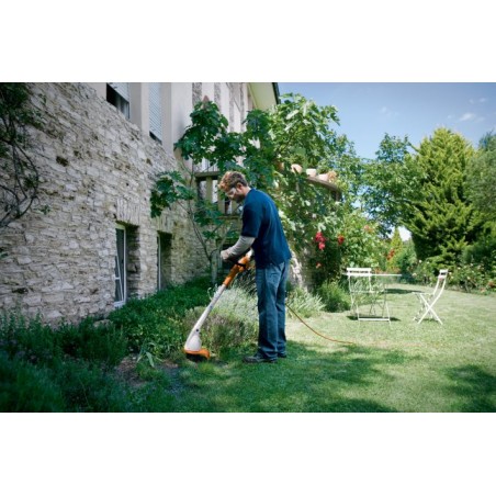 Coupe bordure très léger et silencieux. Modèle avec poignée réglable sur plusieurs positions pour s'adapter à la taille de l'utilisateur. Convient parfaitement pour les travaux de finitions. Permet de couper l'herbe autour des arbres, des allées et des marches dans les jardins privés.