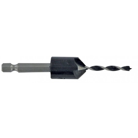 Foret et fraise permettant le perçage et le fraisage en une seule opération dans le bois. Queue hexagonale 6,35 quick change. Grand dégagement des copeaux. Spécial machines à chocs. Pointe de centrage pour un travail de précision.