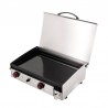 Plancha à gaz à poser en acier inoxydable, plaque de cuisson en fonte émaillée, couvercle de protection en acier inoxydable.