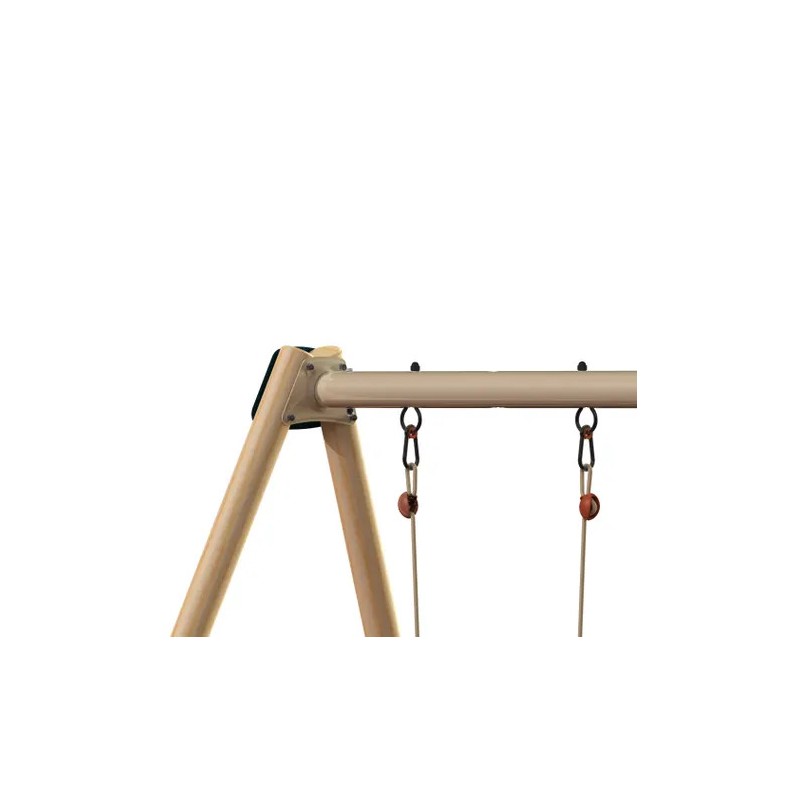 La gamme de portique Techwood Harmonie vous permet de permuter tous les agrès grâce aux poutres préperçées. Ainsi, vous pouvez vous procurer d'autres agrès pour varier les activités proposées et suivre le développement de vos enfants. Un trapèze ou des anneaux peuvent se substituer aux balançoires, une corde à nœuds remplacer l'échelle ! Et, qui sait, un siège bébé pourrait bien accompagner l'arrivée d'un petit frère ou une petite sœur dans la famille ?