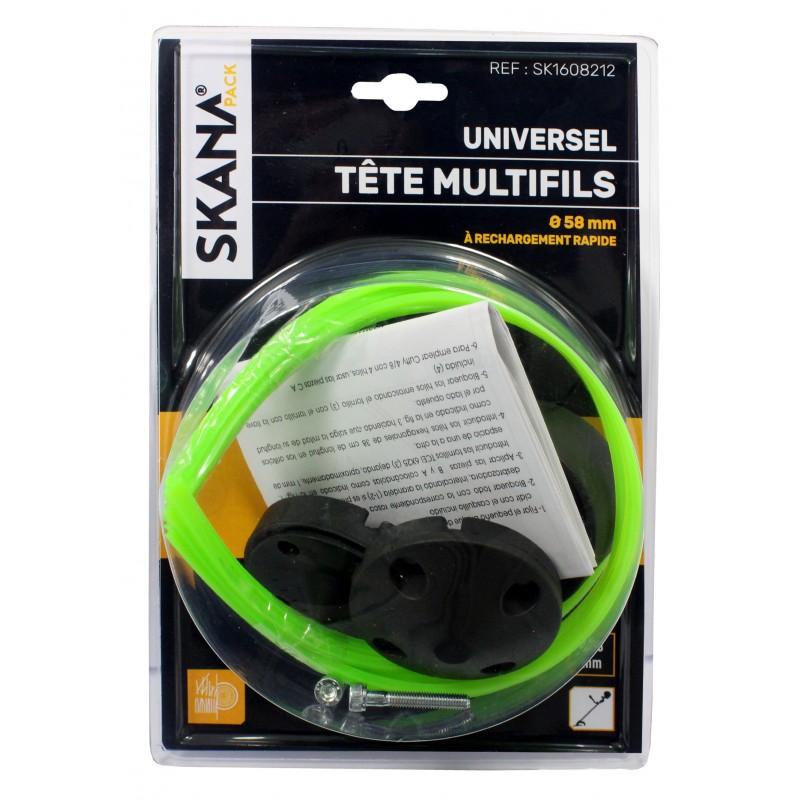 Tête multifils ABS universelle, très légére. S'adapte à 100 % sur toutes les débroussailleuses > à 35 cc. Tête à 2 étages, possibilité de choisir une utilisation avec 4 ou 8 fils en sortie.