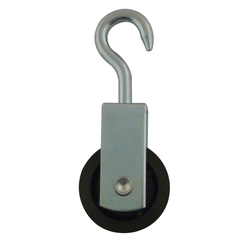 Poulie hissage 1 galet crochet acier galva D50x10m
