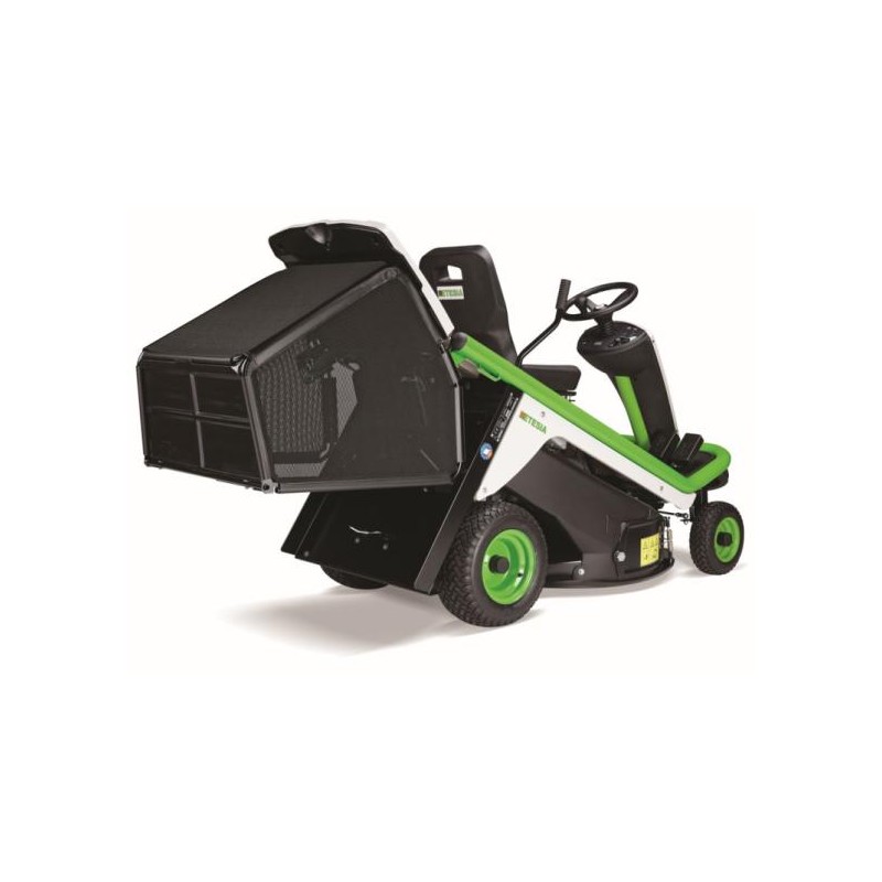 - Tondre et ramasser : plateau de coupe suspendu à éjection arrière directe dans un bac de 240 litres. Efficace même en herbe mouillée ou haute. Avertisseur sonore de remplissage de bac. Ouverture et fermeture du bac depuis le poste de conduite. Ramasse parfaitement les feuilles mortes.