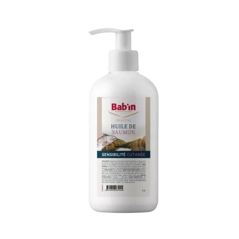 L’huile de Saumon pour chien et chat Bab'in est un complément nutritionnel adapté aux chiens de tout âge. Elle permet un apport immédiat en acides gras lors de périodes de stress, baisse de forme, chasse, sport canin et reproduction. Elle favorise le bon entretien de la peau, du pelage et des articulations. Son flacon pompe la rend très pratique à utiliser.