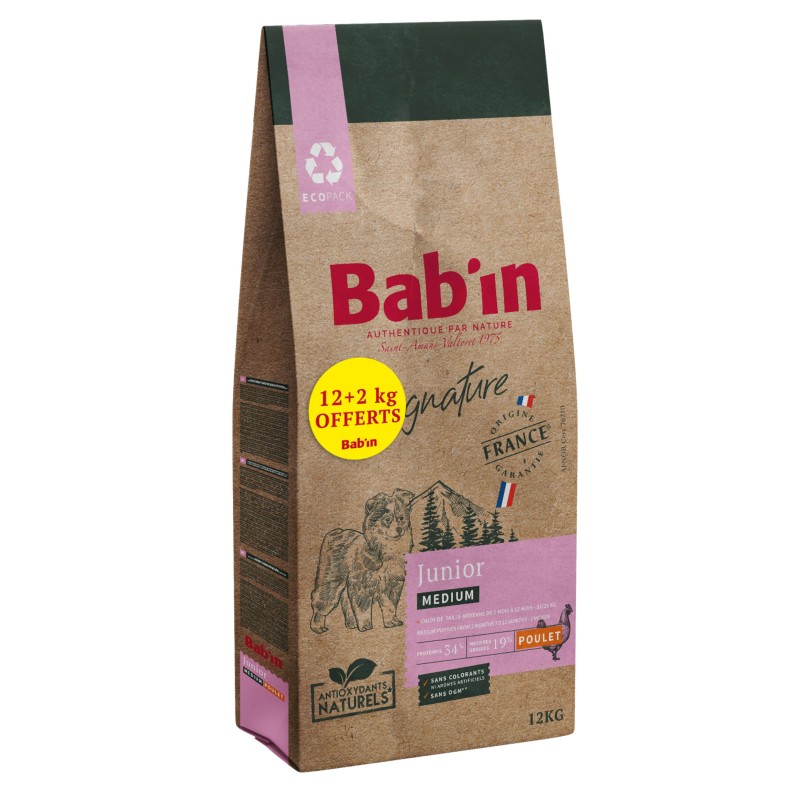 SIGNATURE MEDIUM JUNIOR POULET 12 KG + 2KG OFFERTS - BAB'IN