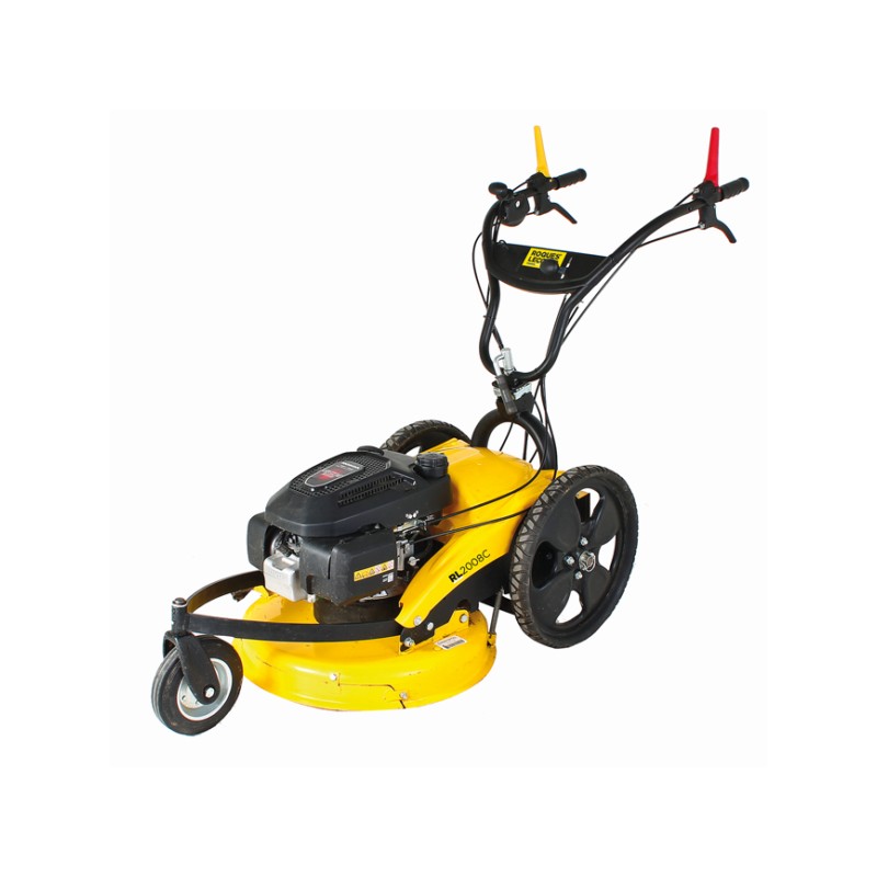 La faucheuse à trois roues RL2008EC est destinée aux herbes hautes et denses, et s’adapte à tous les terrains grâce à sa roue avant pivotante et blocable, et ses grandes roues arrière métalliques.