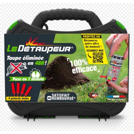 Vendu en mallette. Onde de choc renforcée : 1 pétard évite jusqu'à 50 taupinières. Facile d'utilisation.